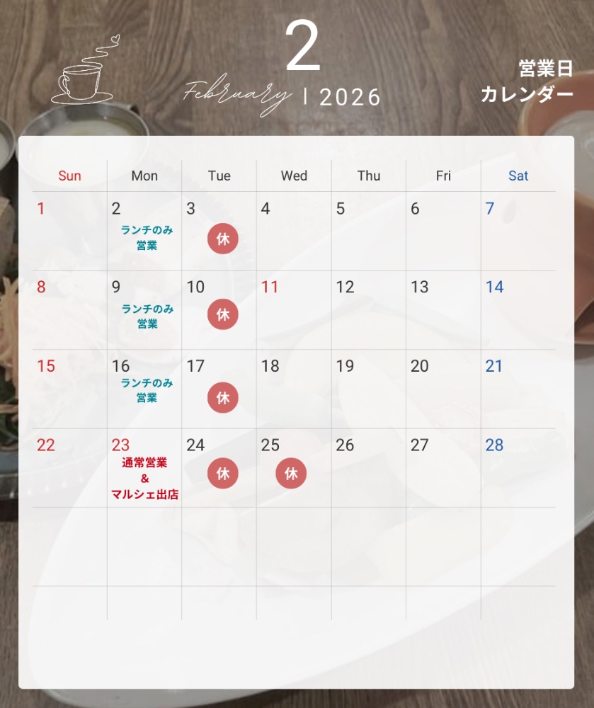 | 定休日 | 毎週月曜日のディナータイムと火曜日をお休みいただいております。(祝日の場合は営業いたします) |