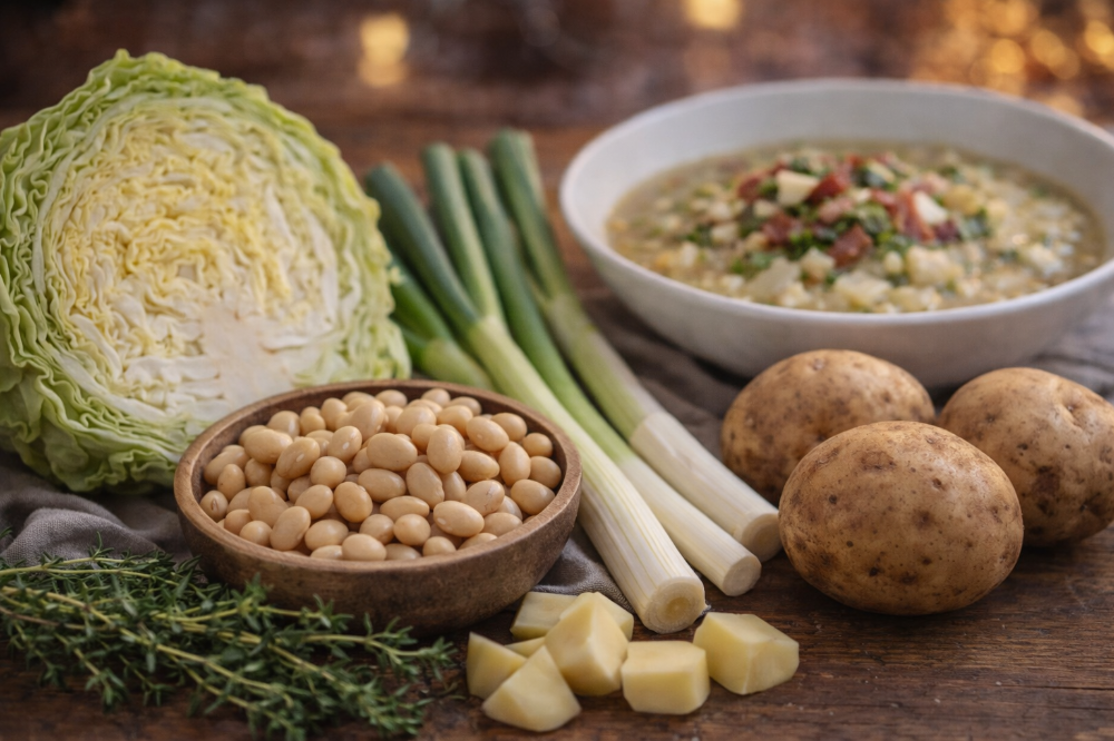 乾燥した白インゲン豆を使うことが多い料理です。